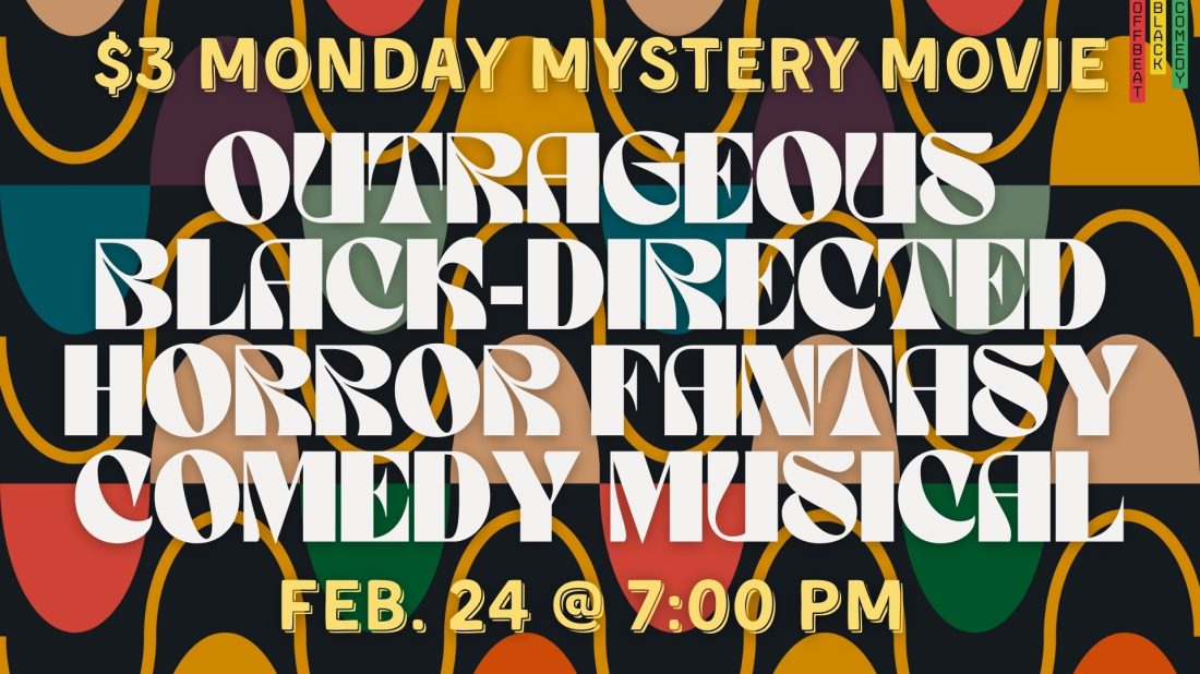 This month, our $3 Mystery Movie crosses over with our Offbeat Black Comedies series as we presented a truly outrageous and wonderful horror-fantasy-comedy-musical hybrid that must be experienced to be believed. As jubilant as it is bizarre, this truly singular film by one of African-American cinema’s great eccentrics is an effusive celebration of Black life that also happens to be one of the strangest damn films you’ll ever see. Just three dollars to cleanse your filthy soul! How can you refuse?
