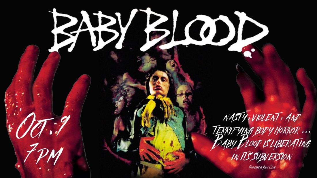Bizarro body horror banger BABY BLOOD (1990) w/ “Bad Babies” pre-show @ 6:30 pm
