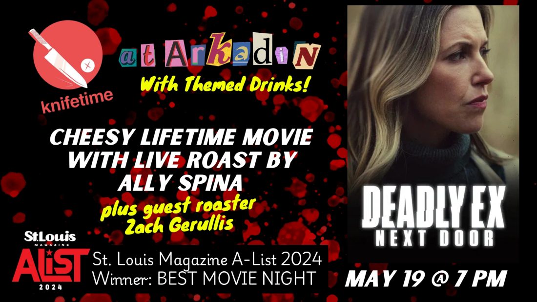 KNIFETIME is a series hosted by Allyson Spina where we revel in the cheesy glory of a bad Lifetime Original Movie! Featuring a special movie-specific drink special and wisecracking commentary from local comedians, this FREE one-of-a-kind event is the 2024 winner of St. Louis Magazine’s A-List Award for Best Movie Night!