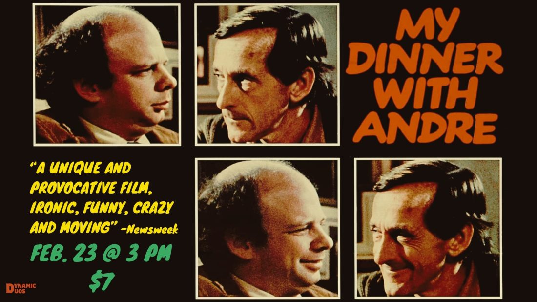 A pre-show of the multitudinous parodies of My Dinner with André will precede the film at 2:30 pm.