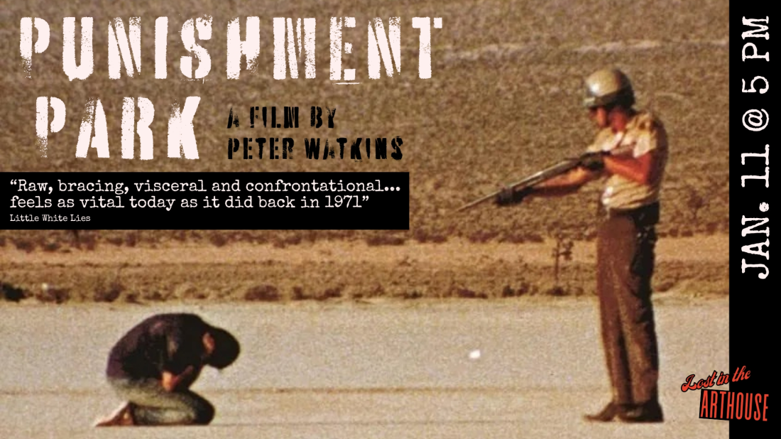 On October 30, 2025, one day after his 90th birthday, legendary British filmmaker Peter Watkins ascended to that great commune in the sky, leaving behind an uncompromising legacy of socially engaged, politically radical, and formally daring cinema that still stands as a challenge to the narcotizing clichés of mainstream filmmaking. We salute Watkins’ life and work with a screening of one of his most blistering and controversial films, PUNISHMENT PARK, now celebrating its 60th anniversary. Set in an alternate version of 1970 in which president Richard Nixon has invoked the McCarran Act to crack down on anti-war protesters, the film imagines a tribunal in which hippies, Black radicals, feminists, and communists are put on trial for subversion. Once convicted, they’re offered the chance to serve a three-day sentence in “Punishment Park,” a forbidding patch of the Mojave Desert where they’ll be hunted by police officers and National Guardsmen in a deadly live training exercise. If they survive, they earn their freedom. But will anyone make it out alive? In this age of ICE raids, Trumpian fascism, and hostility to dissent, PUNISHMENT PARK is absolutely essential viewing.