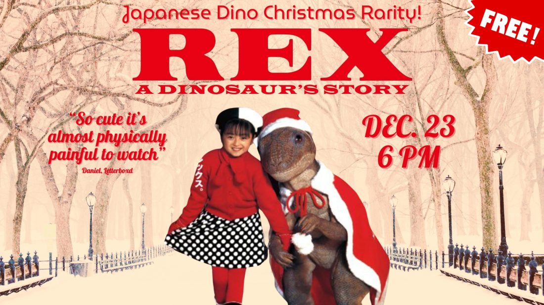 Arkadin’s Christmas present to you is a FREE screening of a little-known yet aggressively adorable yuletide dinosaur kiddie movie from Japan! Made to capitalize on the success of Jurassic Park, REX: A DINOSAUR’S STORY is unique and charming — something like if My Dog Skip had a baby with Prehysteria. The film tells the story of an adorable young girl, Chie (Yumi Adachi), who befriends an even more adorable young dinosaur after it hatches from a prehistoric egg discovered by her paleontologist father. REX rightfully became a massive hit in its native Japan, but its theatrical run was cut short by its producer’s arrest on drug charges, and the film is virtually unknown in the United States. Get in the yuletide spirit with this should-be Christmas classic!