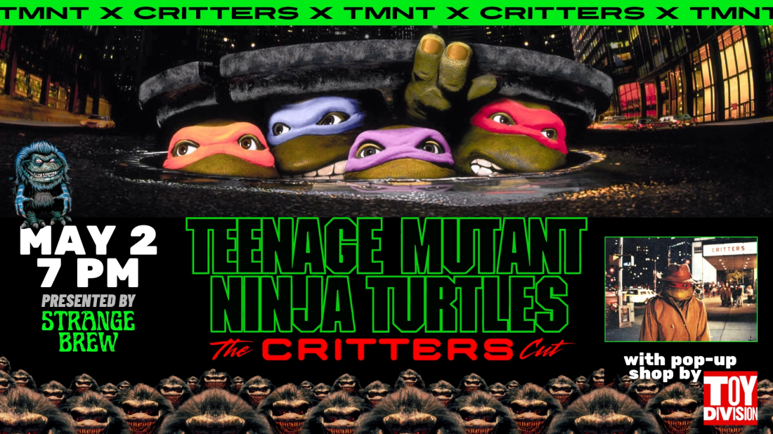 Strange Brew cult movies presents one of the most bizarre double features ever conceived: Teenage Mutant Ninja Turtles: The Critters Cut, coming to Arkadin Cinema for one night only on Saturday, May 2.