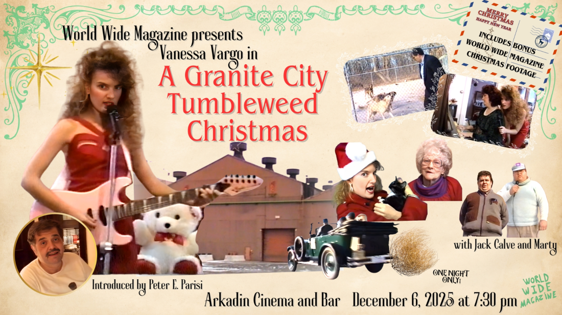 Jim Varagona of The Pete Parisi Archives will introduce a handful of World Wide Magazine Christmas clips and then segue into episode 169 of World Wide Magazine from 1995: Vanessa Vargo in A Granite City Tumbleweed Christmas. See and hear the musical talents of The Little Songbird, Vanessa, to celebrate this gala yuletide season. Spend the holiday in the quaint gem of Illinois, Granite City, with Jack Calve and Marty!