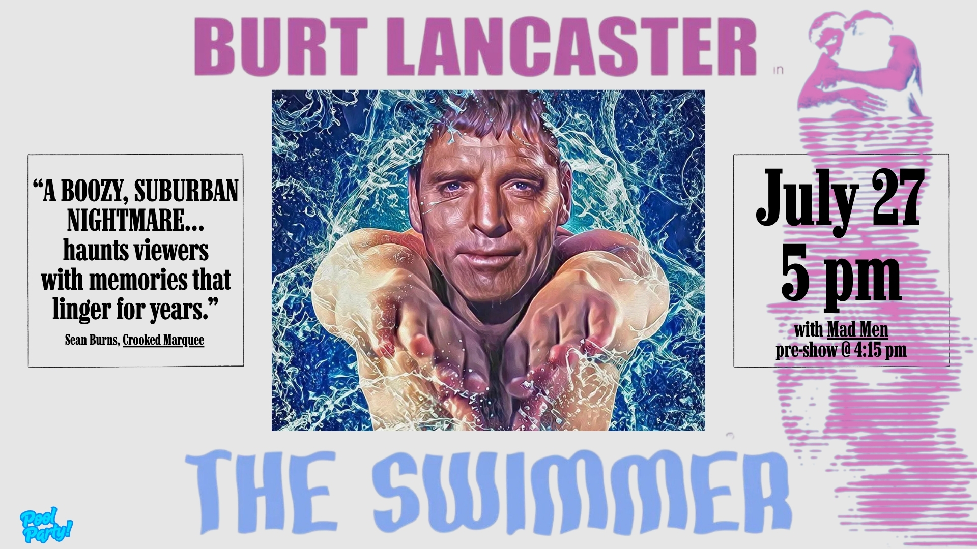 “A BOOZY, SUBURBAN NIGHTMARE...haunts viewers with memories that linger for years.” - Sean Burns, Crooked Marquee Before there was Mad Men, there was THE SWIMMER. One of the quintessential American films of the 1960s, THE SWIMMER is a sun-scorched and surreal suburban…