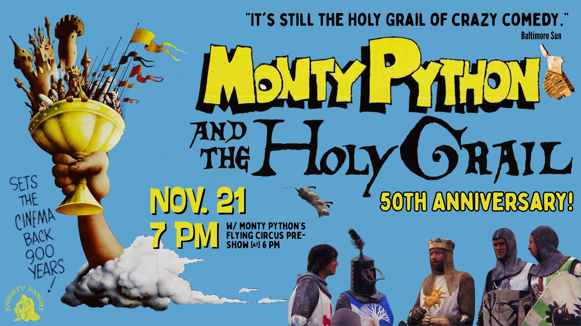 “It's still the Holy Grail of crazy comedy.” - Baltimore Sun Inarguably one of the greatest, funniest, most quotable comedy classics of all time, MONTY PYTHON AND THE HOLY GRAIL is turning 50, and we're celebrating with a screening! An…